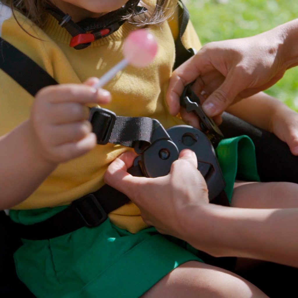 Ausgestattet mit dem Child Seat, können ein oder zwei Kinder im Family Carrier sitzen. Die Fünf-Punkt-Gurte und die gepolsterte Sitzfläche machen die Fahrt sicher und bequem. Optional kann auch nur ein Gurt mittig befestigt werden. Der Child Seat ist für Kinder, die selbstständig sitzen können und max. 120 cm groß sind.
