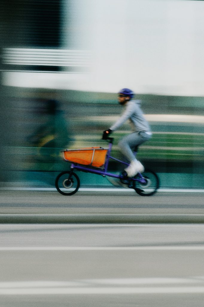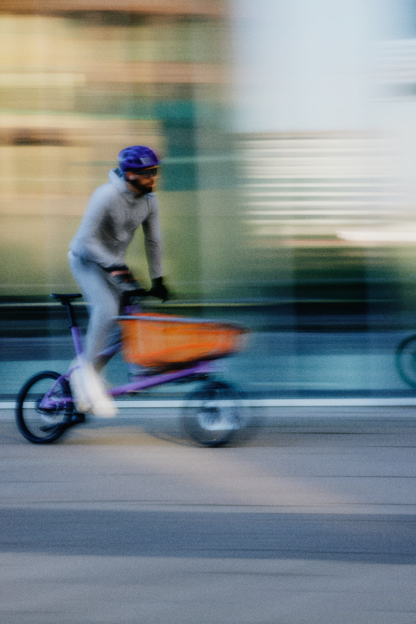Der Carrier besteht aus Aluminum und Mesh-Stoff in leuchtendem Orange, gefertigt in Europa.